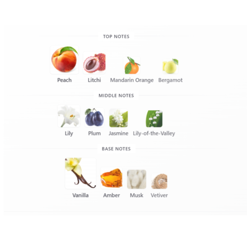 Top Notes: Peach, Mandarin Orange, Lychee
