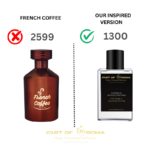Art of Aroma’s inspired version of FRNCH KOFEE For Women and Men recreates the rich warmth of the original with creamy coffee depth, gentle sweetness, and a smooth, comforting finish. This cozy gourmand fragrance offers a sophisticated and long-lasting scent profile, providing an elegant and affordable alternative for those who adore warm, coffee-inspired fragrances with a refined sweetness.